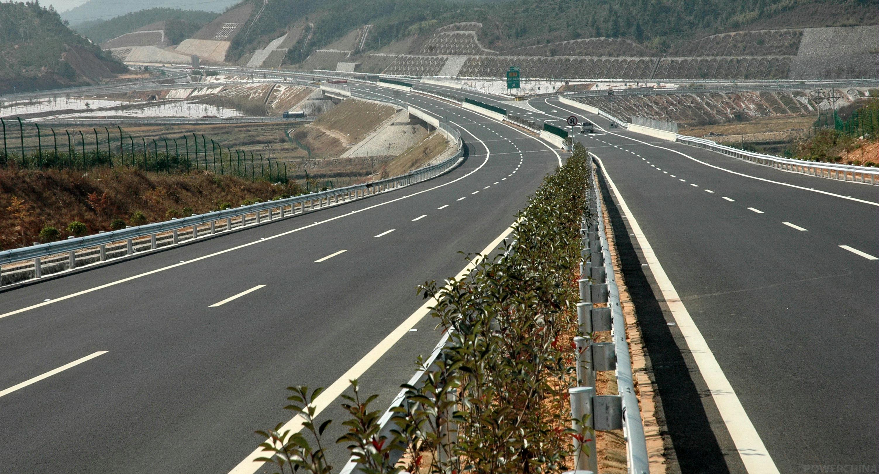 武邵高速公路长约41.5km,技术标准为公路Ⅰ级,沥青混凝土路面,采用四车道高速公路标准,设计行车速度100公里/小时,路基宽度26m。